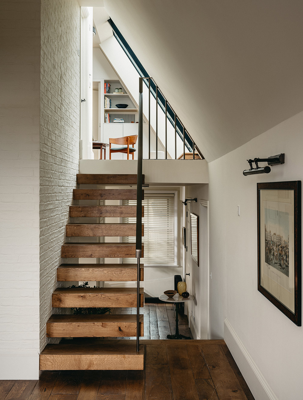 The penthouse was once a series of small rooms which we redesigned for 21st century living. In doing so we discovered a secret room in the turret. The crumbling timber conservatory leading to the roof tops was changed to a modern full height sliding opening with arguably with one of the best views of central London.